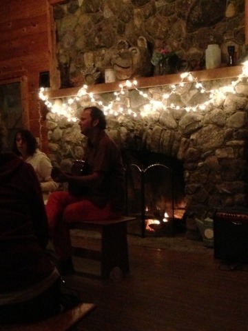Sitting in the dark lodge, lit only with twinkle lights... Listening to people play all kinds of weird instruments and sing parts of songs that no one really knows the words to....