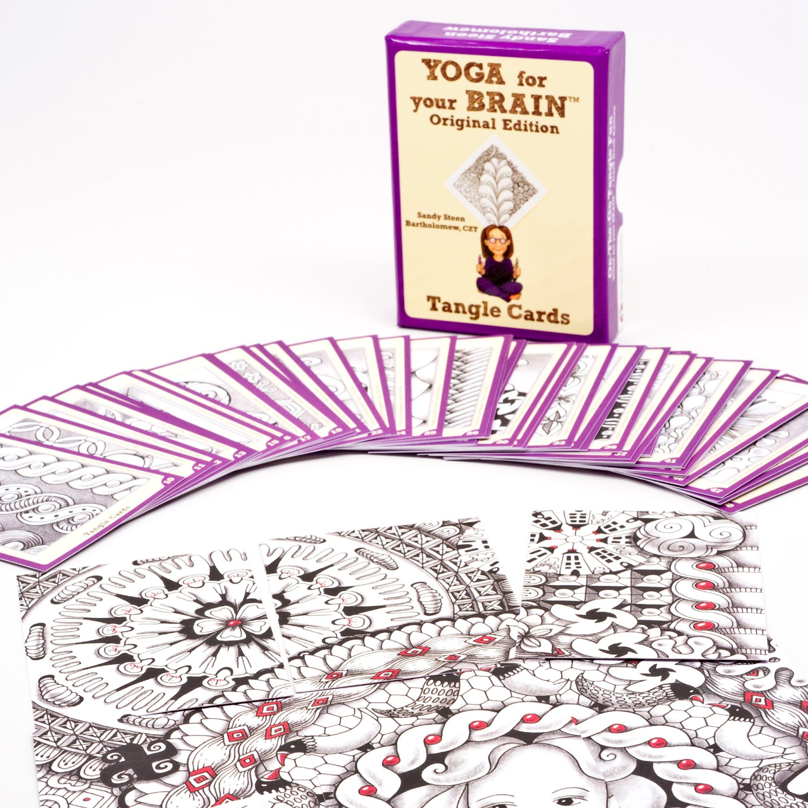 They are expected to hit stores (with a thunk) in early September and are available on Amazon for pre-order (Yoga for Your Brain Tangle Cards
