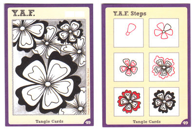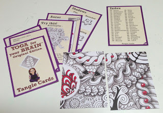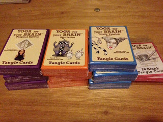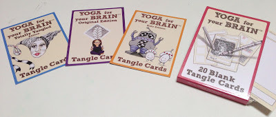 I designed one card pack for each of the books - companion cards. There is a Totally Tangled pack, a Yoga for Your Brain pack and a Zentangle for Kidz! pack. Also a smaller bag of DIY, blank cards so you can record your own tangles.