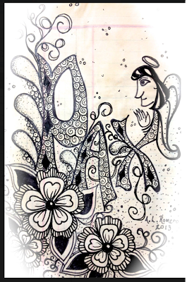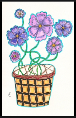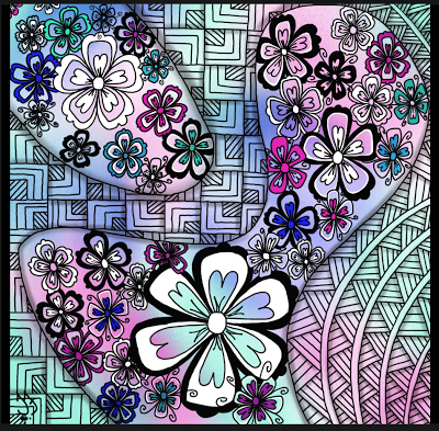 That said, Zentangles do make beautiful art, but I find that they lose their meditative calming powers when I actually am forced to care how the final piece will look. So I think of these artsy pieces more as illustrations with Zentangle-like qualities. Although, quite often when I create (not including free-lance jobs, ugh) I feel a great joy, sense of contentment and ... peace. I don't know where the image is going and I don't care. I am loving the colors flowing together, the happy accidents, the image that emerges from the paint. Life is good. THIS is what the Zentangle-originators are trying to pass on to you, to me, to anyone who cares to know that amazing feeling. What you do with these skills is up to you.