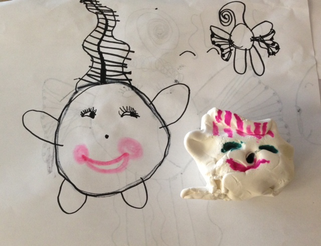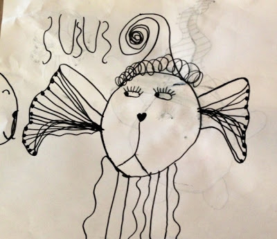 The second rule led to some amazing new characters! When I see Lilah's drawings, I have an urge to use them as inspiration for a series of paintings. And rubber stamps. And a kids' clothing line...