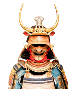 These samurai must have been truly terrifying! Up close, you could see that they actually have razor-like silver teeth. Nowadays, they are tarnished and black, but imagine them new - and flashing ferociously in the sun as this fellow charges straight for you! (I apologize ahead of time for the nightmares...)