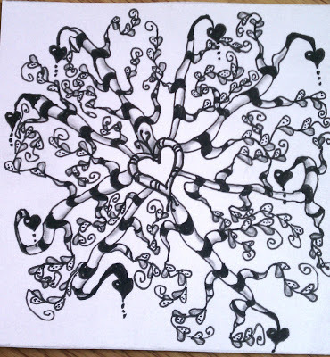 The last few days have been really rough for me. It's a snowy day today in Utah.... I decided to cuddle up in my electric blanket and work on some art--and came up with this heart zenflake (maybe "heartflake"or "melting heart" ?). I'm so surprised at what I came up with. I feel so much calmer and am ready to face the new year.