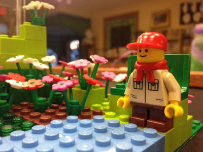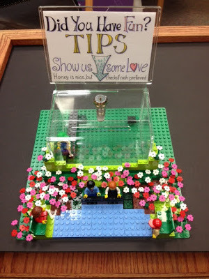 I found a charity-type box at Staples and then customized it with Legos, of course. I think it has a nice serene feel to it, don't you? Very GREEN. (Subliminal thought: "Green. Think GREEN.")
