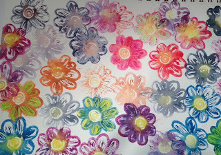 This past Friday, I carved a mustache stamp and then a flower because Lilah was NOT impressed with the mustache. :-/ I am so addicted to this idea of using Inktense blocks to "ink-up" the stamps!!! You just spritz the stamp with water and use the side of the block to spread color over the stamp surface, then print. When the color is dry... it's permanent.