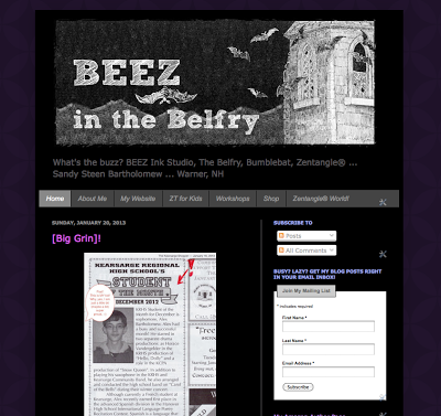 I integrated my cheery, buzzy images and colors from my new website and BeeHive blog with the darker imagery of the Belfry... voila! (sorry, can't get the accent thingy to work!)