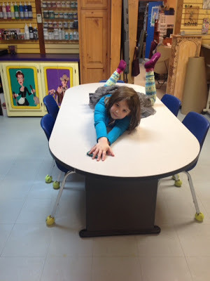 I spent the entire week cleaning out the classroom and moving around furniture. I am AMAZED that I was able to make things fit and more than a few things "disappeared"... but the classroom is now organized and usable. Lilah washed down every surface, including the chairs and cabinets. She said she used that little blue sponge, but it looked like there was a lot more involved in the scrubbing process.