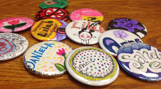 To help us all get to know each other, we need name tags. These pins will be kept on long ribbons so they can be reused each week - and I hope we will add many new names to the batch!