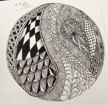 • When it was complete - in true Zentangle fashion - any blips and bloops, spills and differences in technique - all blended into the overall design. It looked so beautiful! Everyone stood around looking very pleased with themselves.