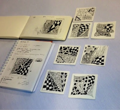 I really love seeing the application of the Zentangle method with other, more tactile materials (blog post about shaving cream). It fascinates me how the mindfulness and creative confidence can transfer to other mediums besides pen and ink. AND how easily people accept it and dive in when they feel they recognize something about it... "I've been doodling all my life," or "pouring the sand is like decorating a cake"... has anyone else tried any unusual materials for tangling?