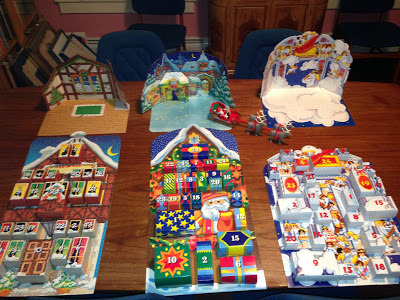 Lilah and I set them ALL up on the dining table - four scenes in a row. There was Santa's Workshop, the Christmas Market, and the Heavenly Bakery. Everyday she opened a few boxes and set up the characters and objects in their respective scenes.