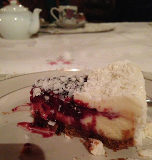 raspberry cheesecake encrusted with white chocolate... mmhm... our meals were prepared by a pastry chef named Paris.
