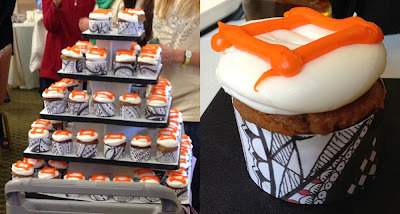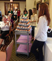 During break, I got trapped in the room talking and signing books (I'm not complaining, it's a total trip to be treated so nicely - and it does wonders to refill my confidence tank). In the middle of a conversation, I noticed people returning to their seats and muttered "Oh, I didn't get a cupcake". Next thing I know, someone is handing me a lovely, creamy... oh slurp... cupcake. And another wonderful soul brought me a glass of tea. Have I ever mentioned how much I LOVE having minions?