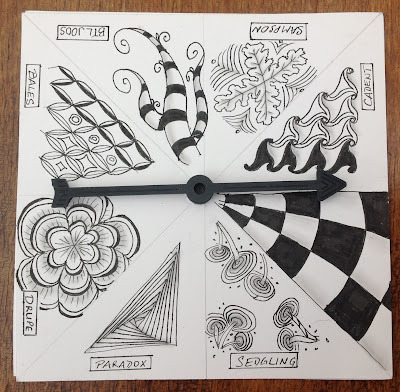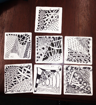 My Open Studio on Saturday went really well! People tended to come in waves so I didn't get much time to talk with everyone in depth. I did meet a fellow who was trying to discover all 106 of the official Zentangles and he had an impressive stack of finished tiles. I have to track him down for you all - he described an intriguing system he has of cataloging all the tangles.