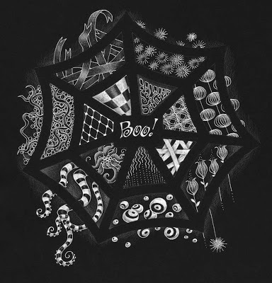 I was asked to teach up in New London (NH) today at the Tracy Memorial Library. Their book program has the theme "Edgar Allen Poe" and with Halloween coming up fast, the question, "can you do an intro to Zentangle with a creepy theme?" Ah, let me think about that one... YES!