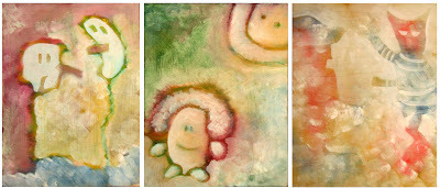 Another class I have taken with Carla is "Creatures on Wood" - Chapters 10 and 11 in this book. This exercise I found very soothing. Here are a few of my mini-masterpieces, not quite complete. Yes! Those ARE Lilah Beans in the middle! :-)