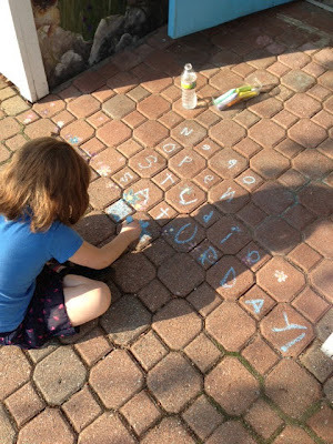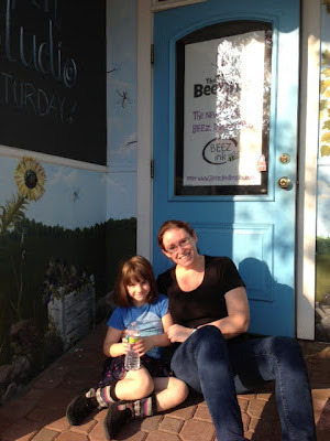 After she finished my "sign" Lilah proceeded to decorate the wooden bench in front of the window, then she drew arrows from 30 feet in either direction leading right into my shop. And THEN she warned away all the pedestrians, "Not today! We are open tomorrow! NOT today!" (By the way, we are open tomorrow!)
