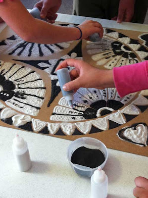 For the last half hour or so, I gave each student a piece of black 12x12 cardstock on which I had traced a cobweb as the "string" - and told them to go at it! This is the part I love - when they start creating their own patterns and improving on my ideas!