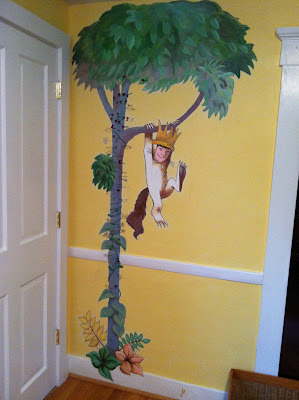 I painted this scene in my living room, 14 years ago, and I've used it as a growth chart for my kids and family members.Sendak, my imaginary mentor, cleared the path for weird, sickly kids with overactive imaginations! Hee hee. I am very grateful that I was able to meet him and that he lived such a long and interesting life. He is immortal through his art and his stories. But he will be missed.