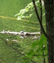 There are some really pretty vistas, but when we stopped (to catch our breath) at a lake, The Pogue, we saw a bunch of really cute turtles on a log. Only one wasn't camera shy...