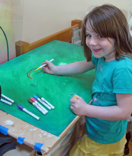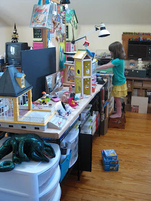 PROBLEM: Lilah, my 5 year old, spends quite a bit of time in my studio. Yes, she makes a big mess. Typical. But her mess... ahem... "creative play" has been migrating across the room. Closer to where I work. In fact, she had taken over one of my primary work spaces!