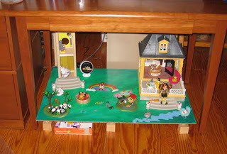 Three hours later, my counter is clear, clear, clear! And the fully loaded garden (Playmobils, Barbie kids, and all) slides under my desk. Woohoo!