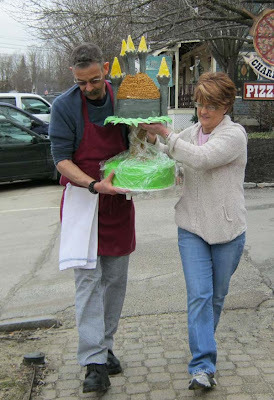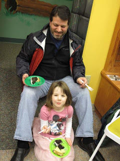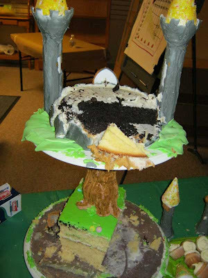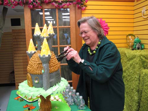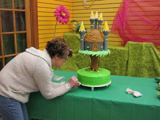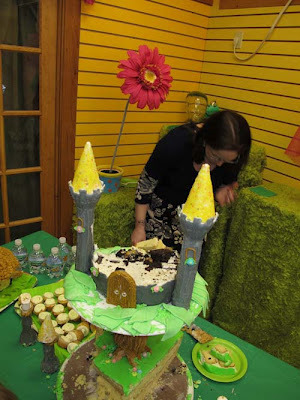 Deb Moore of The Foothills restaurant constructed the most AMAZING castle cake. Not only was it gorgeous and awe-inspiring, but it was delicious too. Each section was a different kind of cake (vanilla below, chocolate and pound cake above). I sampled every section after the party was over - they were all good. I was a "little" hyper for the rest of the evening!