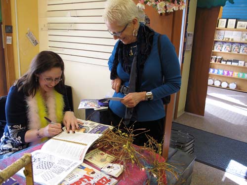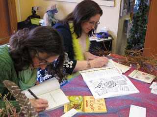 I hadn't realized how badly I needed a party - and sometimes it is nice to be a celebrity for... about 3 hours. This party was to celebrate my new book (coloring book) "Tangled Fashionista" and Jen Carson's new fantasy novel, "Hapenny Magick". I did my usual, pre-party-panic... "What if no one comes? What if a TON of people come?" We had about 100 visitors over the 3 hours! (Thanks to everyone who came! I hope you had as much fun as we did!?)