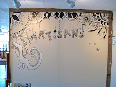 Two years ago I did this mural for a local shop. It's dangly - I found it easier to just start from the top and work down. The mural we have been working on in my studio's stairwell started from the bottom and grew upwards.