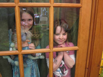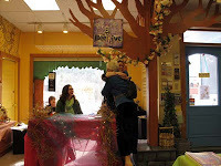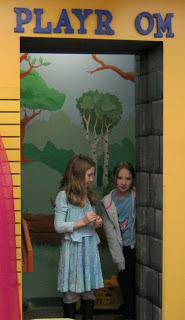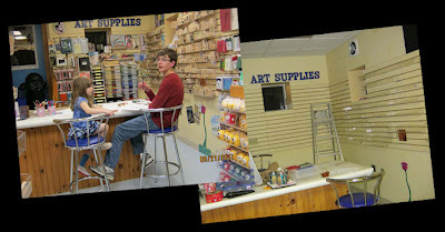 I was snitching photos from my mother's camera to show you the great book party this past weekend, and I found a few of her "pre-event" photos too. They are actually a little sad... a deserted store... but interesting too. Yes, it took us three months to clean out most of the store. And truthfully, it's nowhere near actually being clean. My kids, Alex and Lilah, helped me push all the remaining product and extra displays into the storage room and stamp room. Anything we couldn't move, we covered with pretty cloths. Lilah was in heaven! It was a huge, colorful, empty space to dance and twirl around.