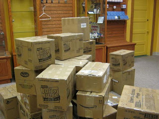 27 boxes donated to World Vision. Seriously. And this was the SECOND batch. The room felt HUGE when they were gone!I think I need to do a yard sale at the shop to get rid of the extra displays - big and small. Then... maybe some new paint... then a killer idea of what to DO in this space now! I have a few ideas, but I am open to hearing more. Put your opinion in the comments below - what would you like to see in this space?