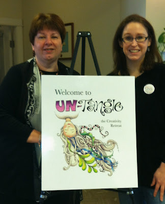 I still can't get over how many people came up here for this retreat! Even with the snowstorm. What an amazing group of people - an interesting mix of skills and characters - and even a few men. Whoo-hoo! Linda Pearl did an impressive job getting it all pulled together and she is already planning another retreat for the last weekend in September (write that in your calendar!) UN-Tangle 2 will be a day longer and will have some business stuff added in. I'll tell you more about it when I can.