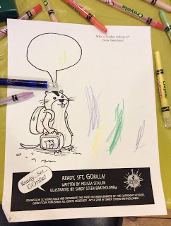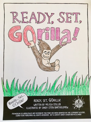 Today is THE day! The BIRTH of Ready, Set, GOrilla! written by Melissa Stoller, illustrated by (ME!) Sandy Steen Bartholomew, and published by Spork/Clear Fork Publishing.