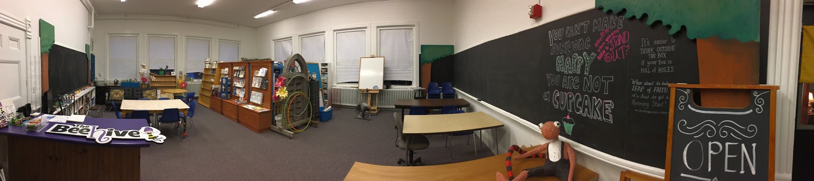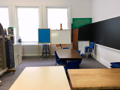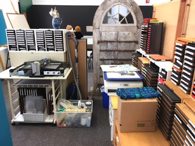 I still have a lot more art materials and books to bring to the studio, some lighting and murals too... but I got slammed with a virus and I'm stuck in bed for a bit. After my next nap, I'll do some more research on maker spaces and collaborative art spaces.