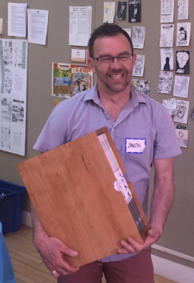 It was agony to wait to see everyone else's pages - and to keep it all secret! But the original artworks were collected from 159 artists and bound into huge volumes housed in a handmade wooden box - and presented last week (at the graduation dinner) to Jason. I think he was pleased...