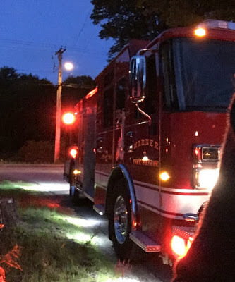 The fresh air felt good, but I couldn't think straight. As we came around the first corner, we saw the lights of an ambulance go by. As we rounded the second corner we saw two fire trucks with the ambulance, and then a few more in front of my house: