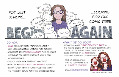 I really prefer walking around and "networking" to standing behind a table all day. I had made some flyers to hand out - I'm trying to get a comic creators group started at my studio in Concord: