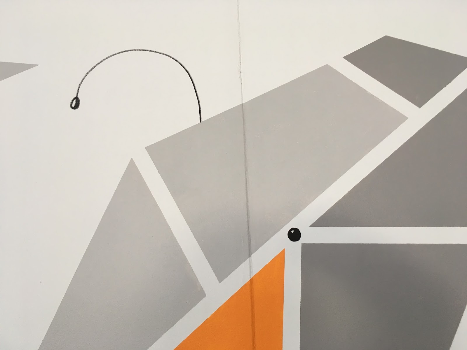 I still have a lot of work to do - this other wall needs a giant chalkboard too. But as we stared at it - with our bloodshot eyes and rumbling bellies - it turned into a fish shape. And since it is made of angles, I realized, it must be an Angler Fish!