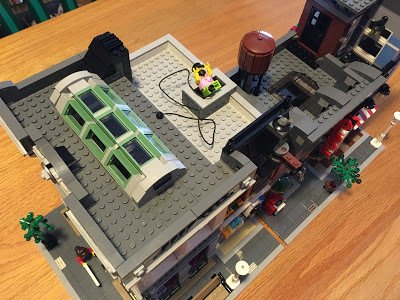 And, finally, in the middle of my dining table sits the recently finished Bank with Laundromat (for laundering cash!) and the Detective Agency, Pool Hall, and Al's Barber Shop.