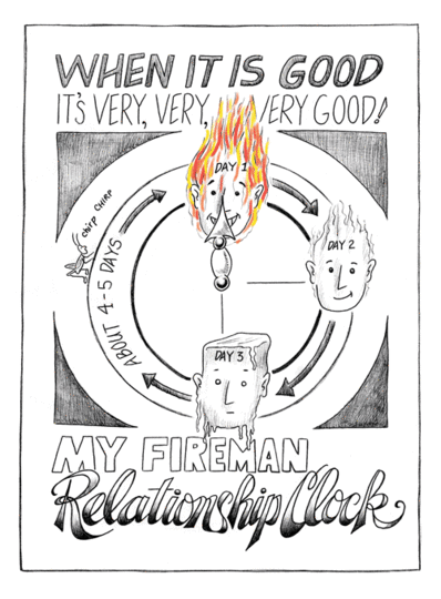 Wednesday was a total wash. A blizzard. I had no way of getting into Concord to work at the studio. Which was fine. I was in such a deep Depression - I spent most of the day just staring at the wall and crying. I tried calling the Fireman, but he was busy. I remember my daughter asking me the next day if he was in Ice-head or Cricket mode? We couldn't figure it out, but it obviously wasn't On Fire for You mode.