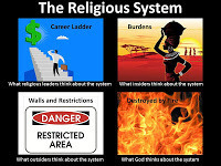 Religious System: Religion drives a wedge between God and man. Then it tries to