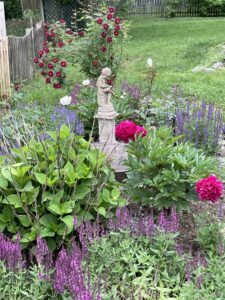 My garden’s roses, peonies, hydrangeas, daisies, clematis, and other plants are each designated to honor or are planted in memory of loved ones. I pray for those dear ones and thank God for them each time I tend their flowers, so it truly is a prayer garden.