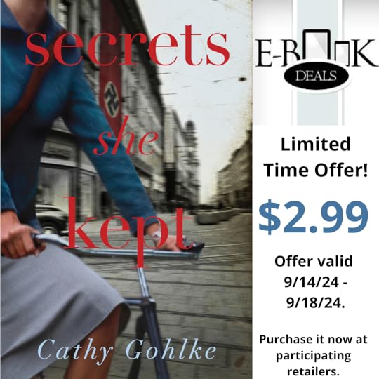 See my website for Book Discussion Questions, a Pinterest Board, and Recipes of foods mentioned in Secrets She Kept: http://authorcathygohlke.com/books/secrets-she-kept/