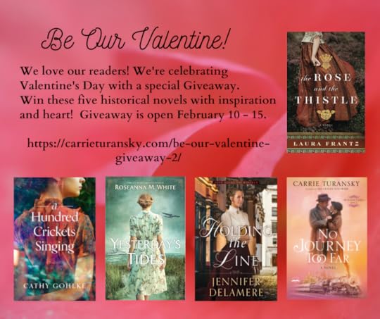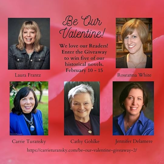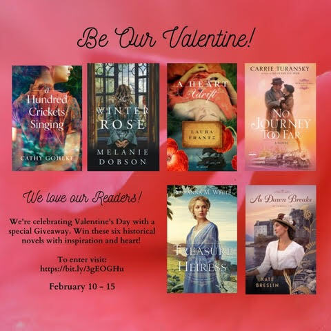 Enter to win on Carrie Turansky’s blog post: https://carrieturansky.com/be-our-valentine-giveaway-2/