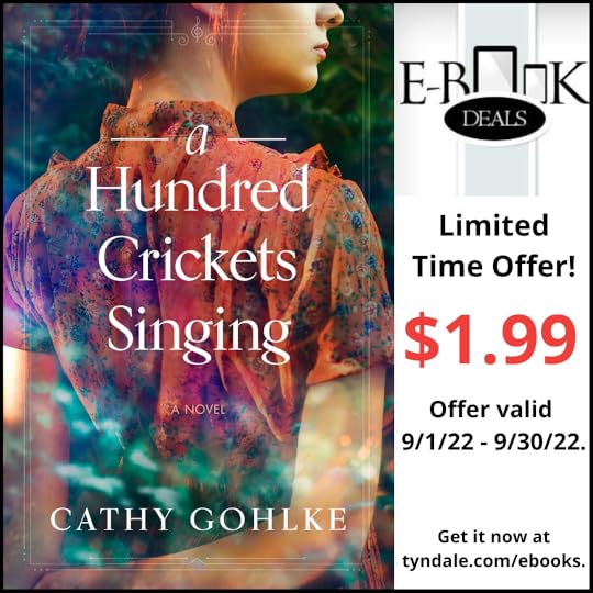 If you’re looking for a September read, step with me back in time (American Civil War and WWII time-split story) to No Creek, North Carolina in A Hundred Crickets Singing. Tyndale House Publishers is offering the E-Book version of A Hundred Crickets Singing for $1.99 for the entire month of September through your favorite E-Book vendor. You can access the sale here: