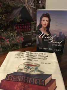 Cathy Gohlke’s Giveaway from Until We Find Home — a book from England, depicting the lovely and story inspiring home of Beatrix Potter, a tea towel with a beloved quote from C. S. Lewis, and a signed copy of Until We Find Home. To Enter the Drawing, leave a comment that includes the answer to this question from Melanie’s post above: What was the object that the eccentric Count Christoph Eyssel von Eysselsberg stated in his will must journey across the lake every fifty years, from Hallstatt’s village church to his former home?