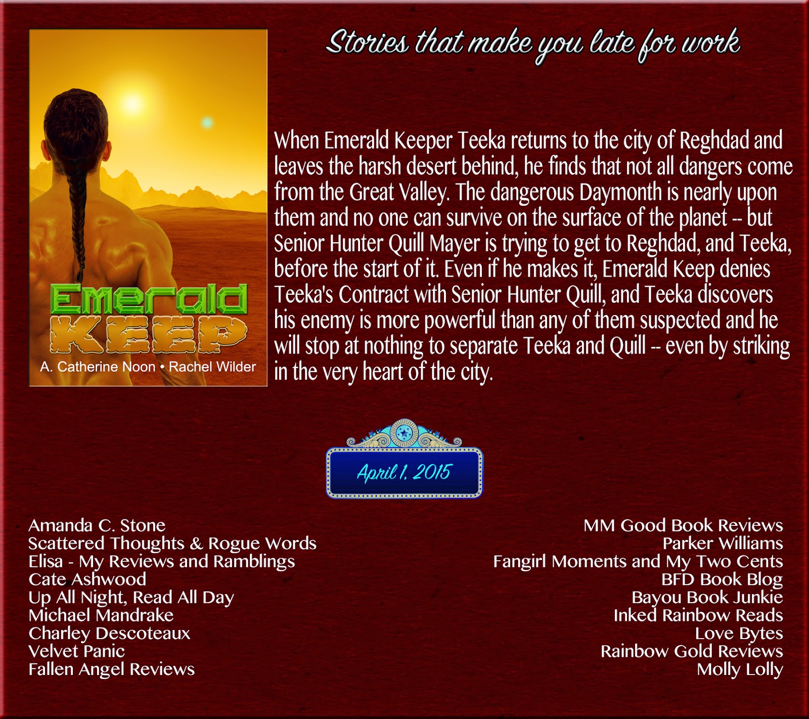 I’m excited about our newest release, which is Emerald Keep; it’s out on April 8th – so just a couple weeks away. It’s very tender, with a bit of mystery and a dash of sexy. We write M/M romance, but this series is all about the relationships and is science fantasy.