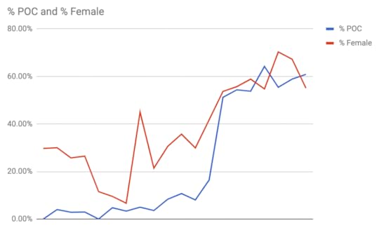 61% POC books.55% female authors.
