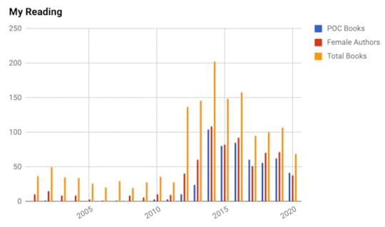 And why do I track these numbers? Because when I didn’t pay any attention to it, I gravitated to a very homogeneous reading list. Which isn’t very good if you want to be exposed ...