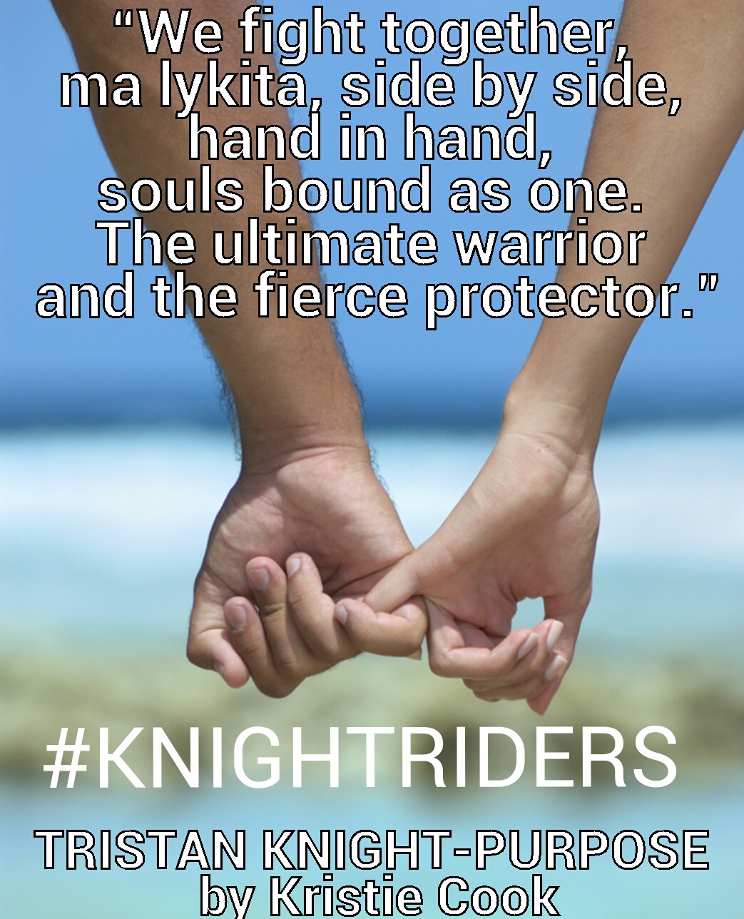 Kristie's Warriors is my brand new street team made up of readers who love my books and are committed to doing what they can to tell the world about them. We have a Warriors Creed and to be initiated, each member must take the Warrior's Pledge. As a member, you participate in Missions and Operations that help spread the word about my books, my characters and me as an author. Our first major task starts next week - Operation #KnightRiders to support Tristan in the NA Crush Tourney! (Of course, you can support him anyway - but that's another post coming soon.)